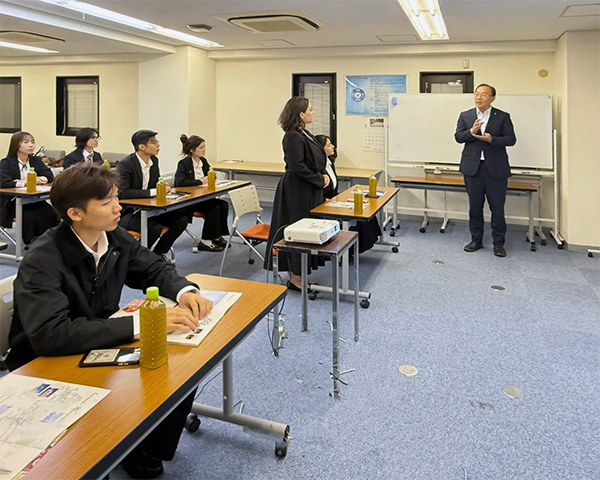 講座では、同社の歴史や企業文化、国際的な事業展開について説明があり、さらに支社内部の組織構成や業務内容(航路運営、顧客サービスなど)についても詳しく紹介されました。