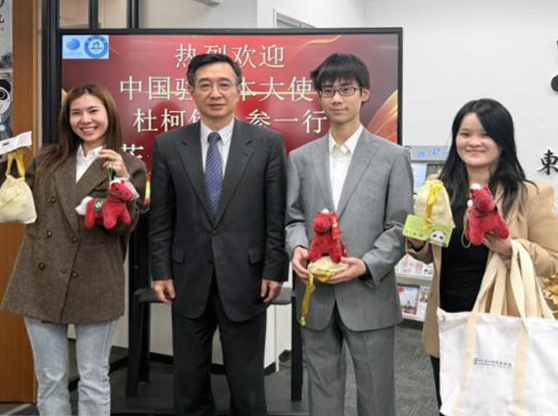 1月20日、日本では新年を迎え、中国では春節を目前に控える中、中国駐日本国大使館の杜柯偉公使参事官一行が曁南大学日本学院を訪問し、慰問および調査活動を行いました。海外で教育活動に従事する教職員・学生に対し、心のこもったご挨拶と新春の祝福が贈られました。